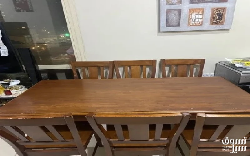 طاولة طعام 6 كراسي بحالة جيدة طول 150 سم عرض 90 سم قابلة للفك وتركيب بسهولة تواصل واتساب