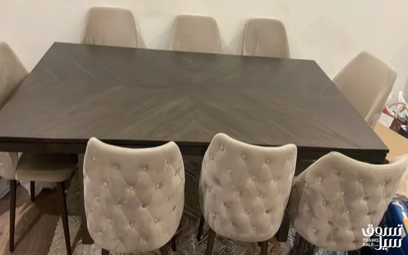 طاولة طعام 8 كراسي مع بيرو من صفاة هوم شبه جديدة سعرها الشراء 700 دك للبيع بداعي السفر 150 دك