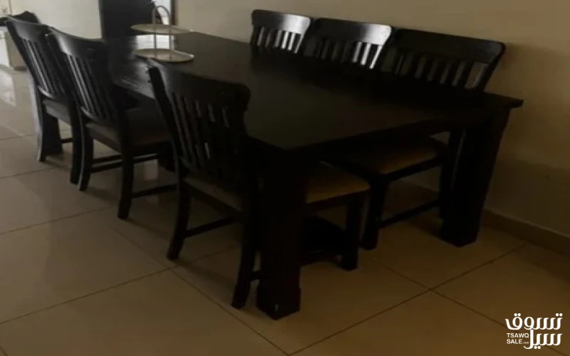 لا يوجد توصيل For Sale: Dining Table with chairs المواصفات: • طاولة طعام مستعملة بحالة ممتازة. • الطول: متران • العرض: متر واحد • من صفات هوم. السعر: للتفاوض للتواصل، يرجى إرسال رسالة مباشرة.
