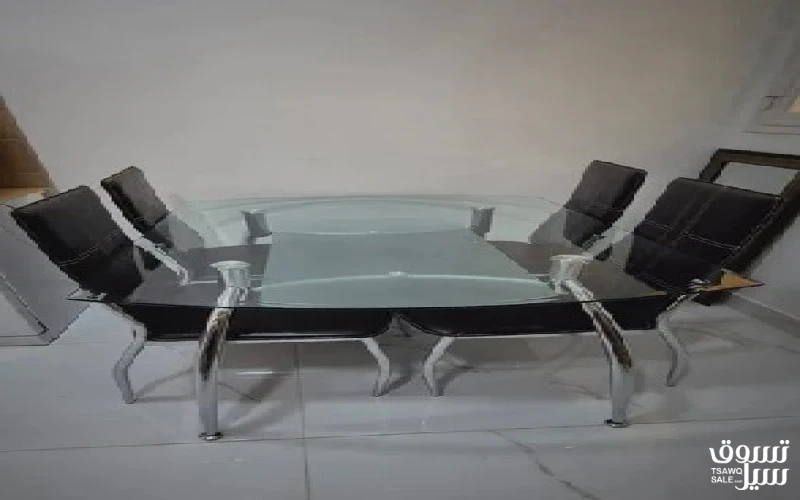طاولة سفرة زجاجية قوية و ممتازة مع أربع كراسي جلد
