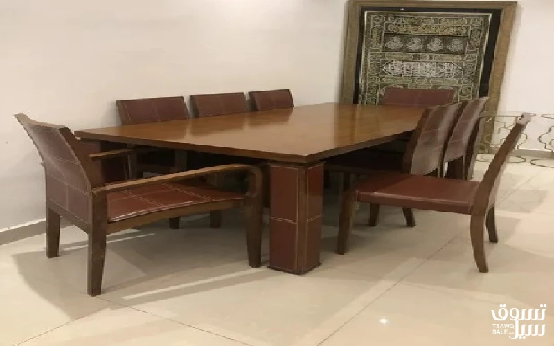 طاوله سفره مع 8 كراسي ولكن في كرسي مكسور اليد. الرجاء التواصل عبر رسائل الواتساب فقط