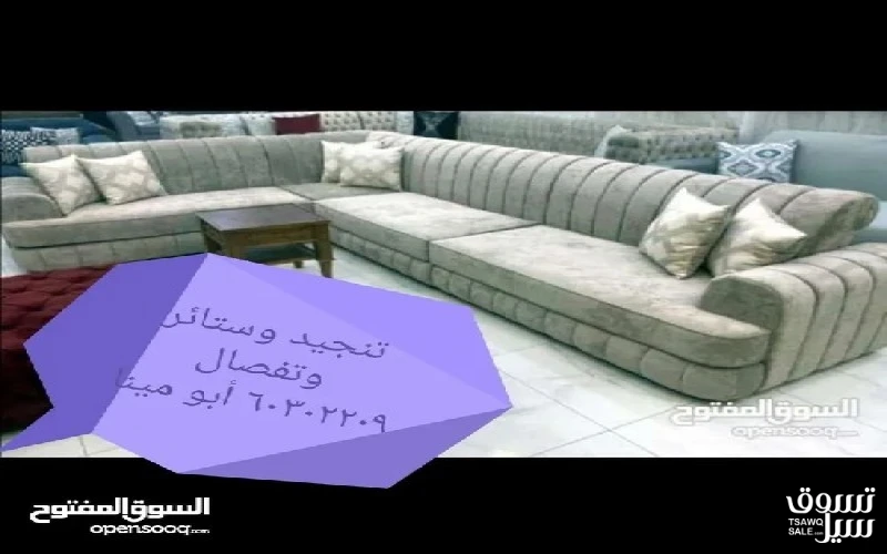 تفصال وتنجيد الاطقم والجلسات الأمريكي والديكور والستائر الرول ومساند الظهر اسفنج البغلي