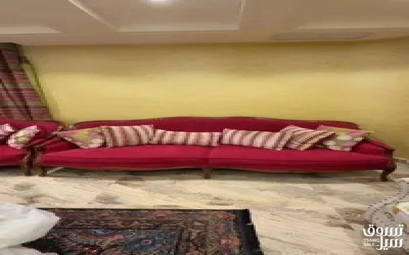 طقم اثاث مجلس 4 قنفات و 4 كراسي و ستارة فرنسي ( محل نوبلز الشويخ ) اثاث جديد غير مستعمل