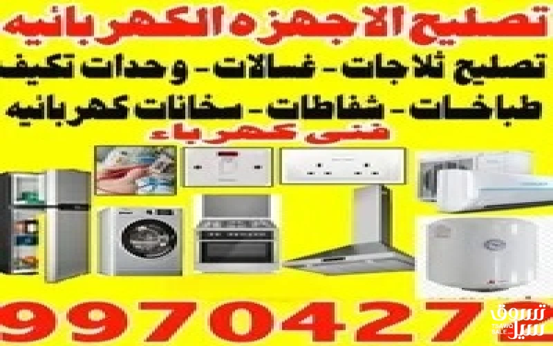 تصليح الأجهزة الكهربائية تصليح ثلاجات - غسالات - وحدات تكييف طبّاخات - شفاطات - سخانات كهربائية فني كهرباء فني هندي Salman إضغط ليظهر الرقم.. 997042XX ---