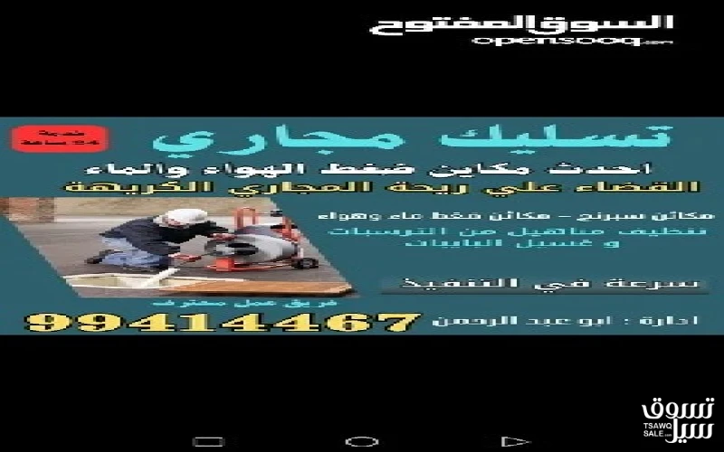 تسليك مجاري باحدث المكائن الضغط الماء والهواء وتنظيف المناهيل من الرواسب وازاله الرائحه