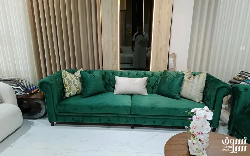 WDطقم جديد كامل 1كنبه 4 اشخاص 1كنبه 3 اشخاص 2 كرسي مفرد خام مخمل مضاد السوائل