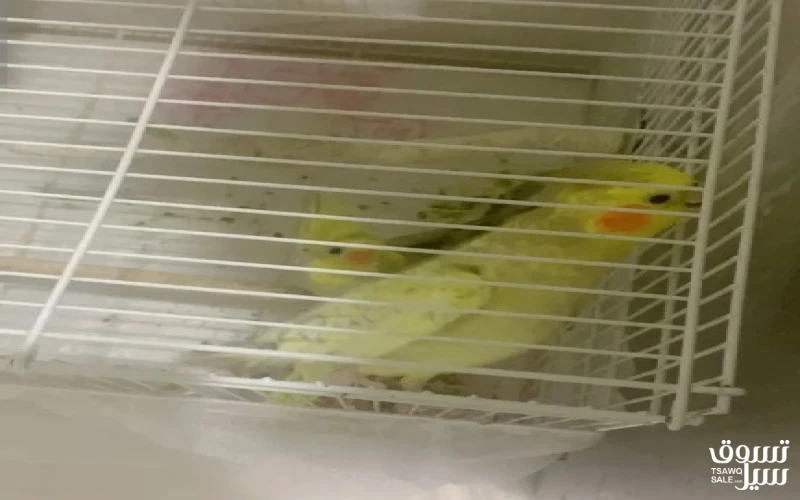 زوج طيور كوكتيل كروان مع القفص للبيع الاستلام من حولي التواصل عالبرنامج