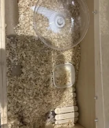هامستر رمادي مع بيته و العابه العمر شهرين تقريبا